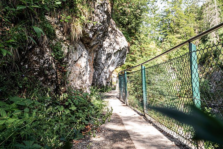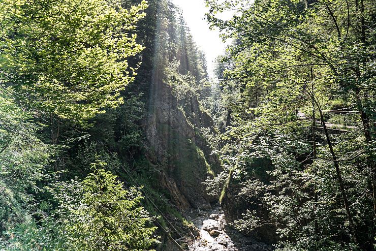 Die ersten Meter des Weges führen auf einer breiten Forststraße durch einen lichten Wald. Immer weiter wagt man sich in die unberührte Natur vor. Mit jedem Schritt in Richtung Klamm, entfernt man sich vom Alltag - eine angenehme Ruhe stellt sich ein. Man betrachtet das Grün und hört in die Stille des Waldes hinein: Ein Rascheln in den Blättern der Bäume. Das Flüstern des Wassers im naturbelassenen Bachbett, nur zwanzig Zentimeter tief und völlig unangetastet.