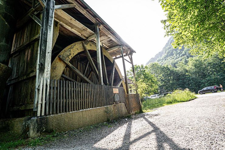 Der Weg zum Kraftplatz Gießenbachklamm führt über die bayrische Grenze ins benachbarte Kiefersfelden. Ungefähr drei Kilometer vom Ortszentrum entfernt, begibt man sich auf eine etwa einstündige Wanderung durch die Klamm. Der Ausgangspunkt ist leicht zu erkennen: Ein historisches Wasserrad - mit sieben Metern Durchmesser - dreht hier seit Jahrzehnten seine Runden, angetrieben vom Fließen der Urkraft. Es wird nicht das einzige, eindrucksvolle Artefakt aus der Vergangenheit sein, das uns auf dieser Reise begegnet.