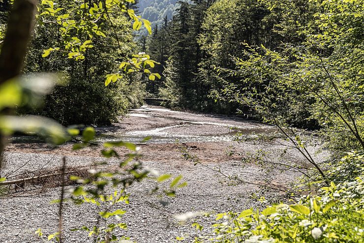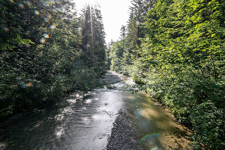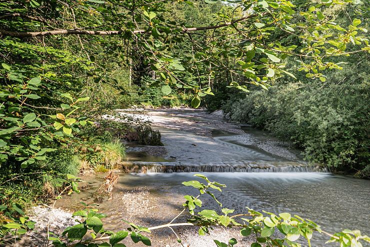 Geht man weiter den Bach entlang, kommt man zur hinteren Gießenbachklamm. Diese ist weniger bekannt und deshalb ein wahrer Geheimtipp: Am Flusslauf findet man im Schatten der Bäume ruhige Plätze für die Rast. Der Blick wandert nach oben, mit geschlossenen Augen nimmt man ein Flackern wahr. Licht und Schatten wechseln sich mit der Bewegung der Blätter ab. In diesem Flimmern stehen bewegte Bilder vor dem geistigen Augen wieder auf: Szenen aus der Klamm, die man nicht so leicht vergessen wird. Erinnerungen an die Natur, die man mit nach Hause nehmen darf, um sie immer wieder zu betrachten.
