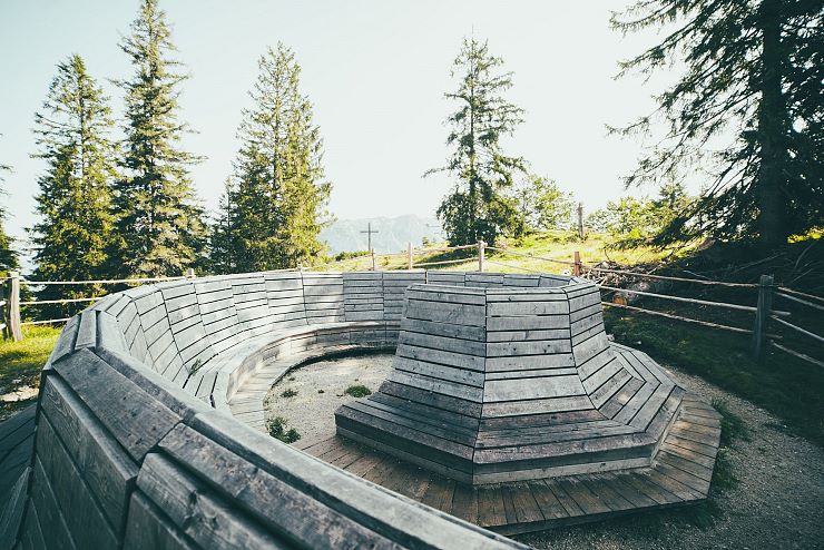 Gleich unterhalb des Gamskogels findet sich das spiralförmige Monument zum "Himmelschauen", das vor wenigen Jahren von Menschenhand geschaffen wurde: In einem Kreis aus Lärchenholz lässt sich das Blau des Himmels genießen. Die spiralförmige Lärchenholz-Bank lädt zu einem Sonnenbad ein, an der Außenseite kann man sich je nach Sonneneinstrahlung in alle Himmelsrichtungen zurück lehnen, um Flora und Fauna zu beobachten. Im Inneren der Spirale hört man in der Windstille fast nichts mehr - nur das Pochen des eigenen Herzens und von Zeit zu Zeit einen Vogel, der in der Abgeschiedenheit der Berge ungestört sein Lied zwitschert.