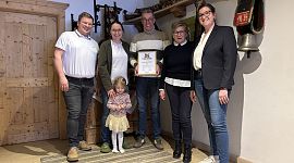 Im Rahmen einer sehr gemütlichen Jause mit feinstem selbstgebackenen Kuchen und Keksen der Vermieterin Frau Annemarie Praschberger wurden im Sonnenhof in Niederndorf 3-Generationen geehrt. Claudia und Olaf Hippauf für 20 Jahre Treue, ihre beiden Söhne Mathias und Christian für 15 Jahre, Vater Helmut für 25 Jahre und seine Partnerin für 10 Jahre. Als Dankeschön wurden vom Tourismusverband Kufsteinerland regionale Köstlichkeiten und edle Riedel Gläser überreicht. Die herzlichen Wirtsleute und unser schönes Ferienland Kufstein sind der Familie Hippauf über die vielen Jahre hinweg sehr ans Herz gewachsen. Sie haben auch fest versprochen, uns weiterhin zu beehren und – wenn es so weit ist - auch ihre Urenkel mitzunehmen.