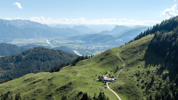 Escursione montana variegata con magnifica vista sulle Alpi di Chiemgau e sul Kaiser. Il confine austro-tedesco attraversa la cima del Kranzhorn, per questo motivo la salita è ricompensata da due croci sommitali. Il rustico Kranzhornalm fa battere più velocemente il cuore degli alpinisti.